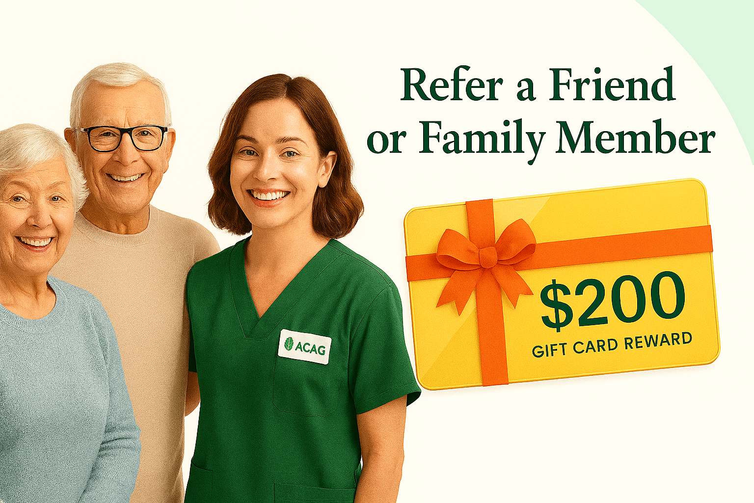 Refer someone to Australian Community Aged Care and we'll reward you with a $200 gift card when they sign up and complete their first service visit.